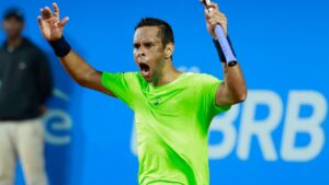 “No segundo set eu tentei me puxar e dando certo por um tempo, no 5/5 eu não joguei muito bem, ele fez duas boas devoluções. Consegui mudar algumas coisas no segundo set, ficar menos nervoso e não conseguir jogar pra ganhar”, considerou.